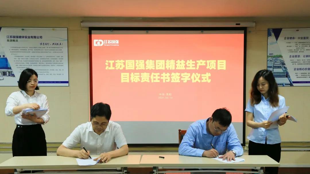 會上,董事長與各專項小組組長簽訂了精益生產項目目標責任書。