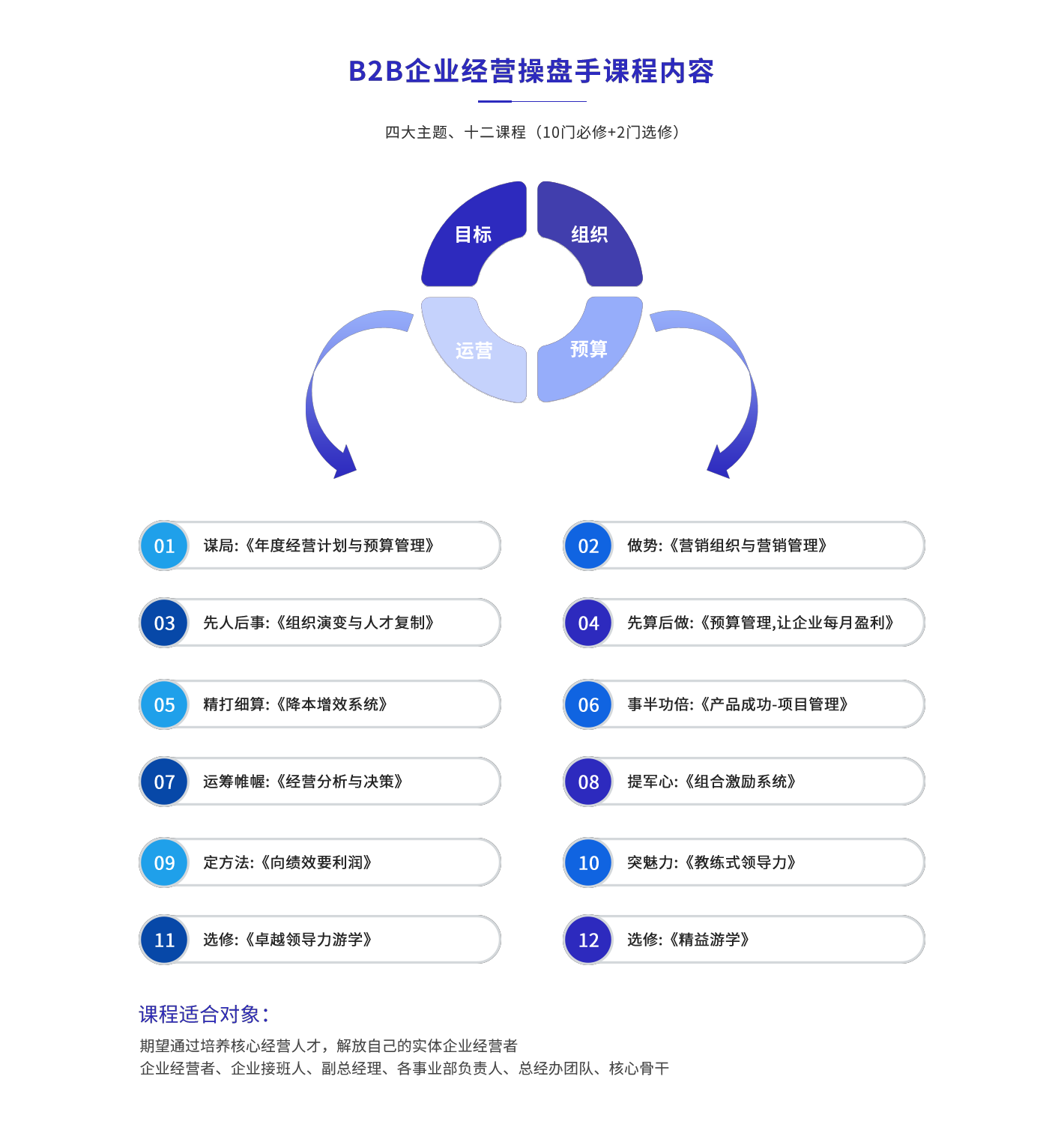用系統(tǒng)、實效、落地的課程,把核心管理人員培養(yǎng)為能打勝仗的經營者