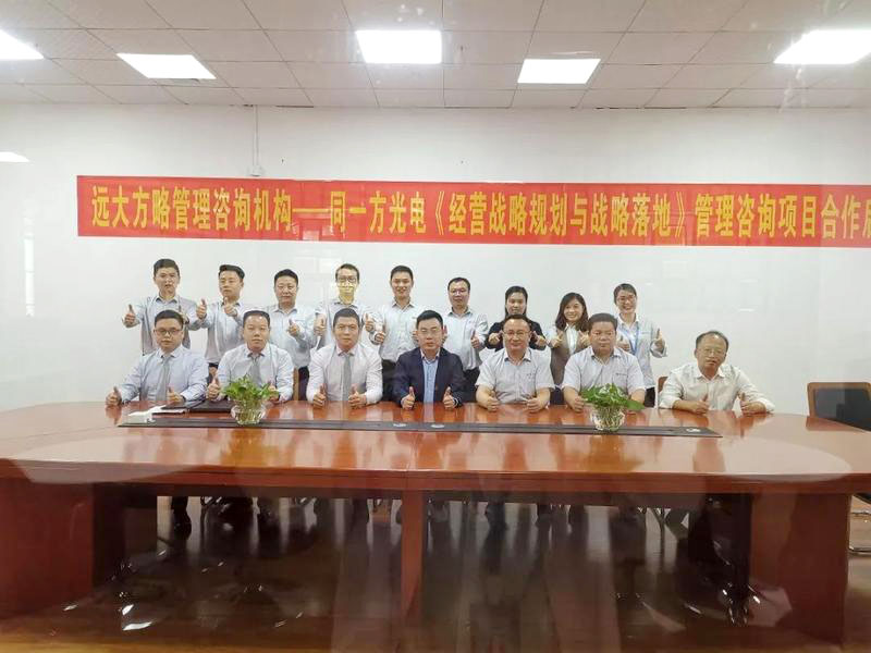 2018年12月,深圳市同一方光電技術有限公司(以下簡稱“同一方光電”)攜手遠大方略集團啟動經營戰略規劃與落地體系改善項目。遠大方略管理咨詢項目總監凌雪飛老師,駐廠咨詢師劉清老師、宮何玉老師入駐同一方光電,通過與同一方光電經營團隊的探討,本次咨詢項目主要圍繞如何提升企業經營業績來展開改善。