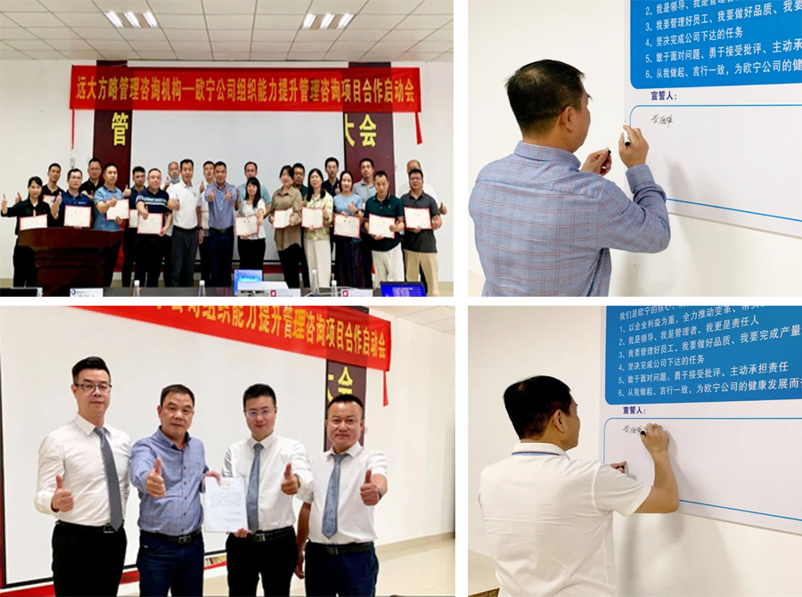 近日, 廣東順德歐寧科技電器有限公司(以下簡稱“歐寧科技”)攜手遠(yuǎn)大方略啟動(dòng)《組織能力提升》咨詢項(xiàng)目。優(yōu)化公司組織架構(gòu),強(qiáng)化組織管理,升級(jí)員工思維,加強(qiáng)能力建設(shè),促進(jìn)生產(chǎn)管理效率,推動(dòng)企業(yè)業(yè)績持續(xù)增長。