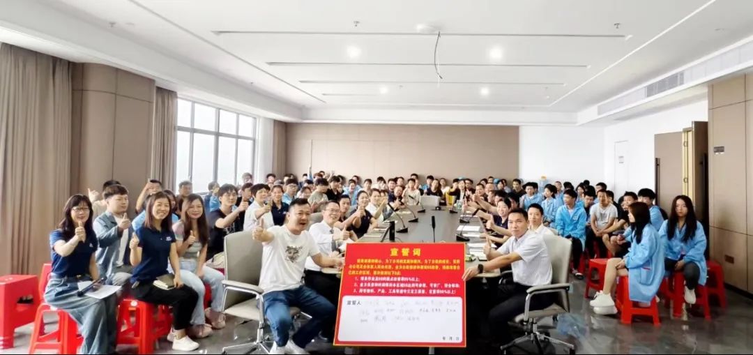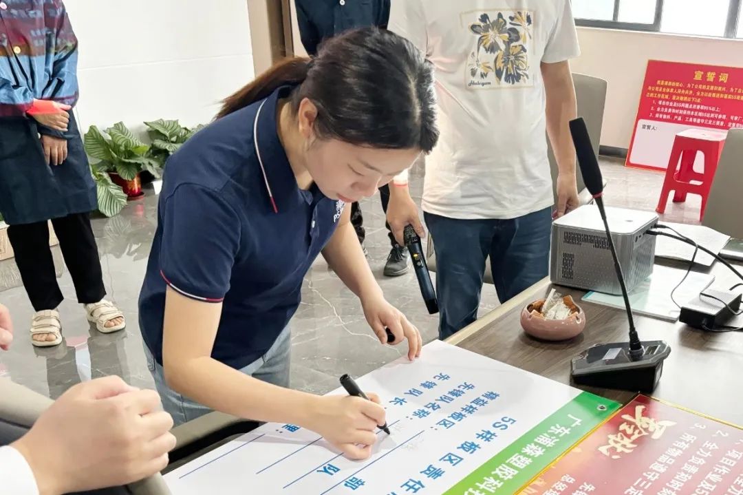 隨后,變革小組各模塊負責人簽訂了責任狀并作了表態發言。方總帶領大家簽下誓言并集體宣誓,鼓勵全員投身變革,為自我發展創造更好的環境,為公司的高質量發展增添助力。