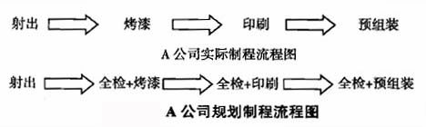 2)對于流程不順的情況,應該在當初的設施規劃時,就要將流程流線化作為目標,即便因為制程所限無法地實現產品流動,也要盡量減少制程及產品的迂回、曲折、往復和停滯,以盡力減少制程內WIP,從而消除制造過多過早浪費。如上例A公司案例中,可以將制程改善為如下分布(見圖3)。
