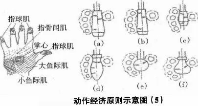 ◆ 節奏輕松原則。動作保持輕松的節奏,讓作業者在不太需要判斷的環境下進行作業,動輒必須停下來進行判斷的作業。實際上更容易令人疲乏。順著動作的次序,把材料和工具擺放在合適的位置,是保持動作節奏的關鍵。