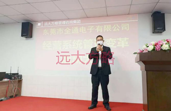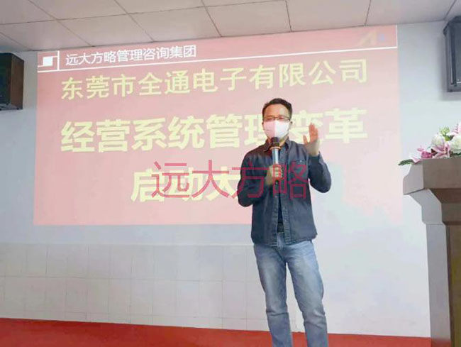 項(xiàng)目啟動(dòng)會(huì)上,東莞市全通電子總經(jīng)理唐忠華先生致辭表示:“ 公司進(jìn)行經(jīng)營(yíng)系統(tǒng)管理變革的意義,對(duì)于全通公司,不是要不要“變”,而是怎樣“變”、什么時(shí)候“變”的問(wèn)題。遠(yuǎn)大方略管理咨詢集團(tuán)已輔導(dǎo)過(guò)上千家 制造型公司,我們周邊有非常多的案例,我們“看見(jiàn)”所以“相信”。本次的合作,我們要借力遠(yuǎn)大方略,以減少全通公司在成長(zhǎng)過(guò)程中摸索和出錯(cuò)的幾率,用較短的時(shí)間走完較長(zhǎng)的發(fā)展之路,實(shí)現(xiàn)快速騰飛。“主動(dòng)是人才,被動(dòng)是奴才”,所有管理者在項(xiàng)目合作期間,必須積極參與到這場(chǎng)“戰(zhàn)役”中,并與遠(yuǎn)大方略老師互動(dòng)、配合,形成推動(dòng)管理改善的合力。最后,預(yù)祝本次全通公司進(jìn)行的經(jīng)營(yíng)系統(tǒng)管理變革活動(dòng)能夠取得圓滿成功,希望我們的管理團(tuán)隊(duì)能在這次洗禮中實(shí)現(xiàn)自我成長(zhǎng)。”
