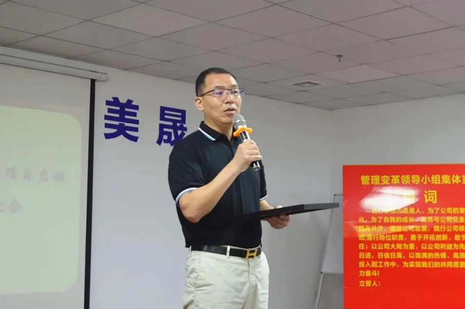 啟動會上杰美晟劉總發表重要講話,劉總表示在這個高速變化的世界,產業在變,環境在變,對手在變,周圍的一切都在變。面對各種無法控制的變化,大家必須懂得用樂觀和主動的心態去擁抱變化,然而變化往往是痛苦的,但機會卻往往在適應變化的痛苦中獲得。此次啟動精益管理變革項目對杰美晟具有里程碑式的意義,遠大方略老師團隊將全程指導,希望大家能夠積極配合老師的工作,共同提升杰美晟精益管理水平,提高生產效率,為杰美晟長遠效益的增長助力。