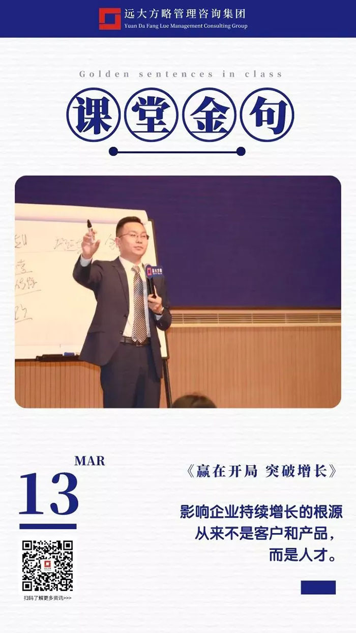 課上老師采用“道、法、術、器”相結合的形式給學員們帶來了一場精彩的知識盛宴。3月13日的課堂上兩位老師也總結了很多金句,可以很好的運用到企業的經營管理中。為了幫助大家更好的吸收和鞏固兩天的學習,小編整理了今天課程雷老師的部分金句分享給大家,希望能給大家帶來更多啟發。