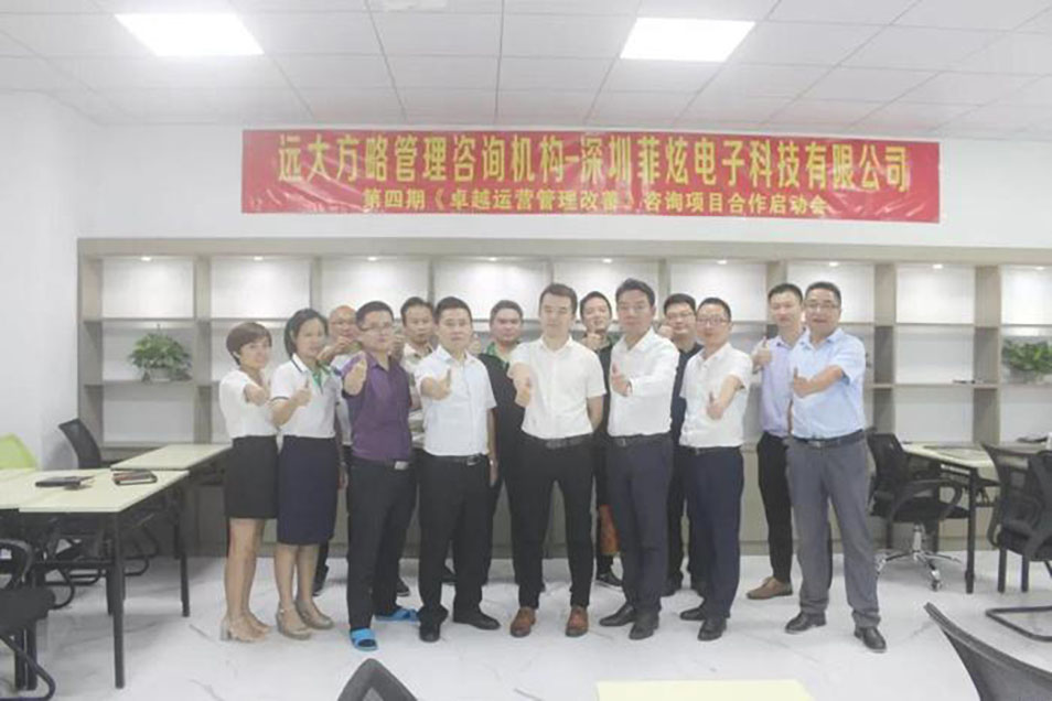 2019年10月,深圳菲炫電子科技公司(以下簡稱“菲炫科技”)攜手遠大方略落地第四期管理咨詢《集成運營管理》改善項目,遠大方略項目經理徐老師、遠大方略咨詢師杜老師入駐菲炫科技,通過與菲炫管理團隊的深入探討,本次項目改善主要圍繞公司基層班組長打造、提升供應商管理能力、優化供應鏈、先算后做模式推行等展開改善。