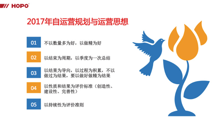 HOPO董事長李董對這季度的自運營進(jìn)行了肯定的同時,并指出現(xiàn)有市場環(huán)境下的我們的一大優(yōu)勢是內(nèi)部運營比對手強,我們?nèi)绾纬掷m(xù)的保持這優(yōu)勢?--需要我們?nèi)w員工的自運營,得提倡和發(fā)揚這種運營模式。
