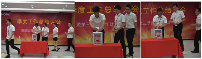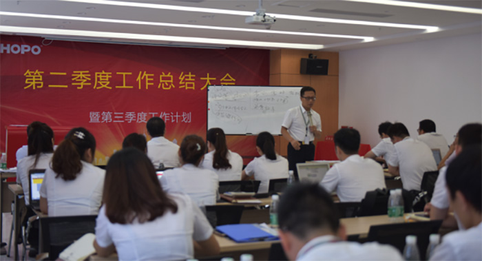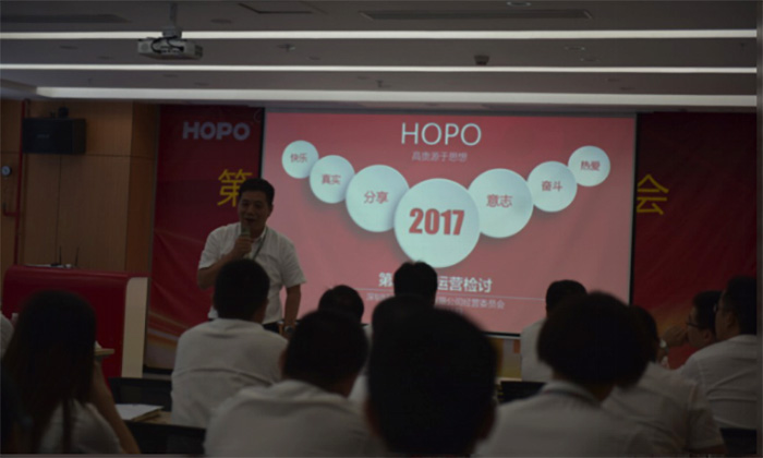 隨后,公司董事長針對季度運營情況,從產(chǎn)品、競爭對手、價格、渠道、團(tuán)隊、戰(zhàn)略角度對公司上半年的工作進(jìn)行解剖;闡述目前的成績與不足,對公司接下來的工作明確戰(zhàn)略布局。從整體業(yè)績情況來看,第二季度同比增長30%,沒有完成公司的要求目標(biāo),對于快速發(fā)展的HOPO來說,迎來了發(fā)展中的一次低谷,警醒我們?nèi)w員工加快步伐,練好內(nèi)功,是低谷也是蓄勢待發(fā)的機會。