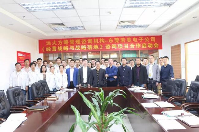 2018年3月22日,遠大方略顧問吳新民老師、宋增進老師、歐陽承喜老師聯(lián)袂進駐東莞市若美電子科技有限公司(以下簡稱“若美電子”),與企業(yè)中高層管理團隊20多人展開《經(jīng)營戰(zhàn)略與戰(zhàn)略落地》咨詢項目的深度研討,共同探討企業(yè)發(fā)展的新機遇。