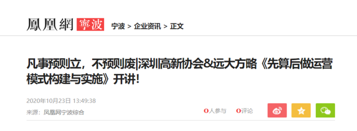 2020年10月21日下午,深圳市高新技術產業協會聯合遠大方略管理咨詢集團舉辦的《企業經營計劃與預算管理專題——先算后做運營模式構建與實施》公益講座在深圳科學館1樓開講,本次課程由遠大方略聯合創始人、咨詢師雷志軍老師主講。