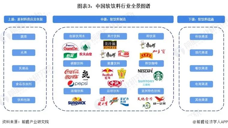 2、產業鏈剖析:包括原材料供應及包裝、軟飲料制造和軟飲料流通環節