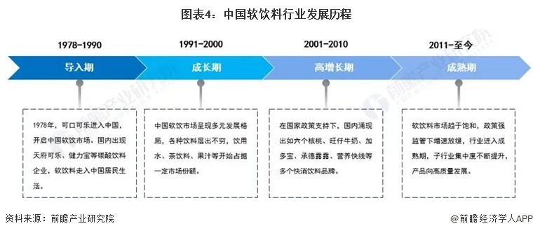 國內軟飲料市場起步于1978年可口可樂進入中國,經過起步階段、成長階段、高增長期等多個階段,市場規模不斷擴大、品類不斷擴寬,目前已經成為全球最大的軟飲料市場之一。在軟飲料行業的發展過程中,本土軟飲料企業,如農夫山泉、康師傅、怡寶等不斷壯大,逐漸具備與國際大品牌抗衡的能力,牢牢占據中國軟飲料市場的核心位置。