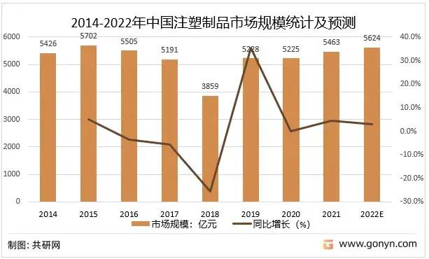 2014-2022年中國注塑制品市場規(guī)模統(tǒng)計及預(yù)測