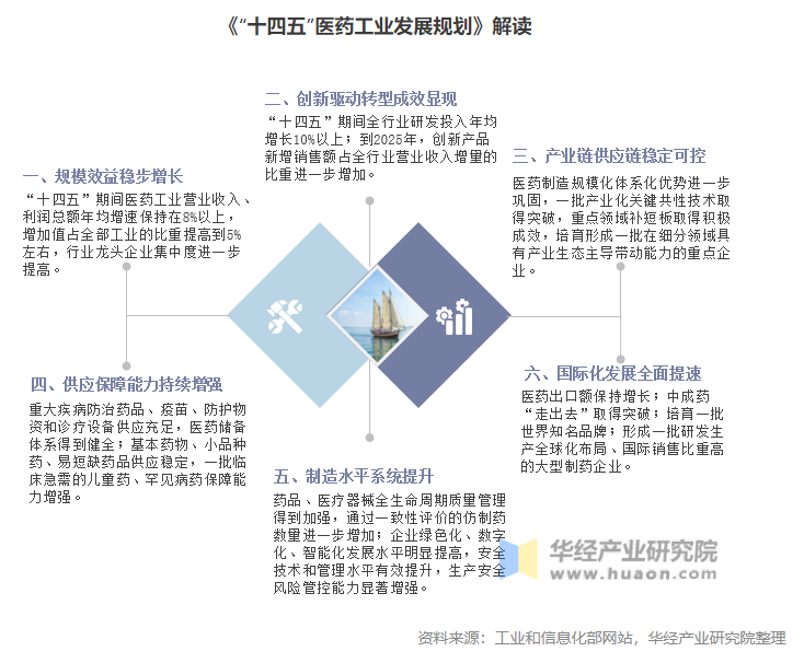 面對國內(nèi)外新形勢發(fā)展,為推動我國醫(yī)藥工業(yè)向創(chuàng)新驅動轉型,促進我國醫(yī)藥工業(yè)高質(zhì)量發(fā)展,依據(jù)《中華人民共和國國民經(jīng)濟和社會發(fā)展第十四個五年規(guī)劃和2035年遠景目標綱要》,2022年1月30日,工業(yè)和信息化部等九部門聯(lián)合編制了《“十四五”醫(yī)藥工業(yè)發(fā)展規(guī)劃》。