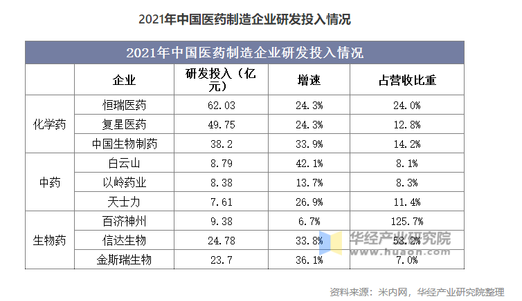 隨著藥品審評審批制度改革、國家醫(yī)保常態(tài)化調(diào)整等政策改革,“創(chuàng)新”逐漸成為藥企的發(fā)展理念。化學制藥行業(yè)正在發(fā)生結構性變化,隨著仿制藥出現(xiàn)藥品價格持續(xù)下降的同時,行業(yè)集中度也有望提升;中醫(yī)藥行業(yè)政策利好不斷,相關部門從市場準入、醫(yī)保支付、審評審批等多個維度對中醫(yī)藥行業(yè)形成政策支撐,中藥原材料價格上漲對企業(yè)決策也造成一定的影響;生物藥雖然起步晚于化學藥,但近年來卻受全球藥企熱捧,成為藥企和投資者競爭的新方向,研發(fā)投入力度較大。