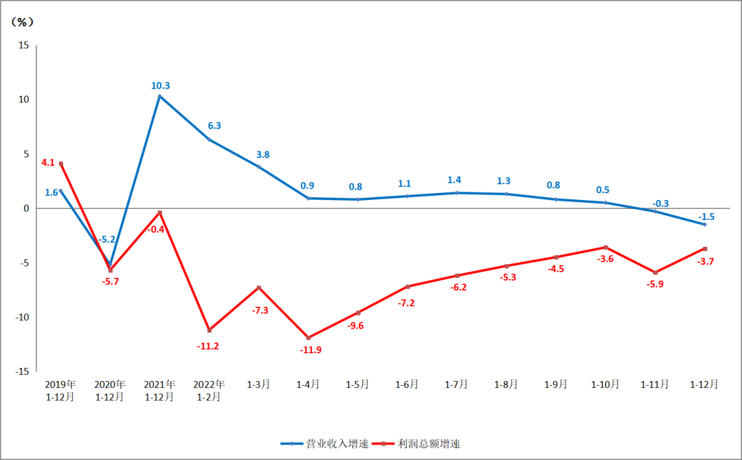 近日,國家統計局披露了2022年12月工業企業經濟效益狀況??v觀2022,全年經濟運行受到國際形勢、國內疫情、高溫干旱等多重超預期因素反復沖擊,整體運行態勢偏弱。