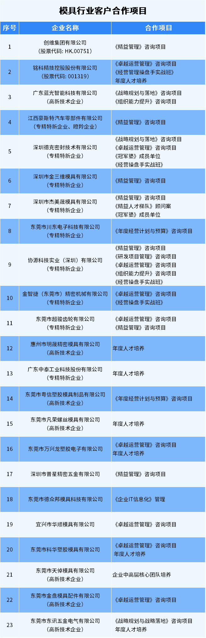 遠大方略精準剖析模具行業發展現狀和痛點,為眾多模具企業賦能,持續開展針對性咨詢項目: