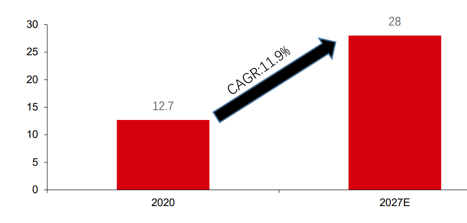 預計 2027 年國內軍用電源市場規模達 28億美元,對應 2021-2027 年 CAGR 為 11.9%。據 Reportlinker,2020 年全球軍用電源市場規模達 73 億美元,預計 2027 年規模達 124 億美元,對應 CAGR 為 7.8%;預計 2027 年國內軍用電源市場規模將達 28 億美元,對應 2021-2027 年 CAGR 為 11.9%,我們據此推算得 2020 年國內軍用電源市場規模約 12.7 億美元(按當年平均匯率折算約 88 億元)。在武器裝備加速換裝列裝、先進武器裝備電子 系統價值量占比提升兩大邏輯驅動下,軍用模塊電源市場正蓬勃發展。