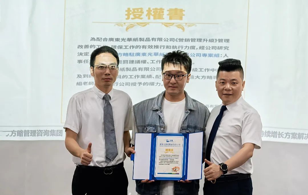 廣東光華紙制品有限公司(以下簡稱“廣東光華”)作為深耕行業多年的港資企業,始終秉持“與時俱進”的拼搏精神,在半個多世紀的發展歷程中不斷突破自我。面對當下市場競爭的新挑戰與客戶需求的新升級,廣東光華主動求變,攜手遠大方略正式啟動《營銷管理升級》咨詢項目,旨在通過系統性的營銷體系優化、專業能力的深度賦能,為企業注入發展新動能,助力企業突破瓶頸,實現可持續增長