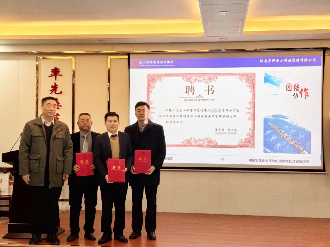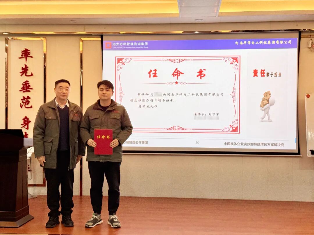 為促進(jìn)項(xiàng)目的有效落地,明確各崗位職責(zé),強(qiáng)化責(zé)任意識(shí),會(huì)上華洋集團(tuán)領(lǐng)導(dǎo)為遠(yuǎn)大方略項(xiàng)目組頒發(fā)了授權(quán)書和任命書,同時(shí)也為領(lǐng)導(dǎo)組長(zhǎng)和領(lǐng)導(dǎo)小組核心成員頒發(fā)了任命書。