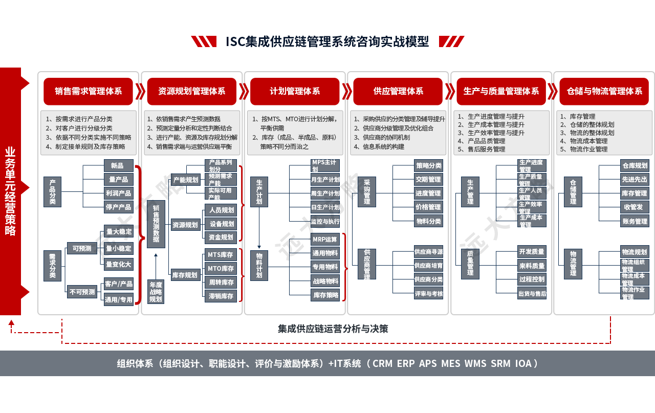 2、輔導模塊:推行ISC集成供應鏈管理,主要圍繞產品運營管理、接單規則和庫存管理、銷售預測管理、S&OP管理、公司計劃模式優化、物料管理體系等