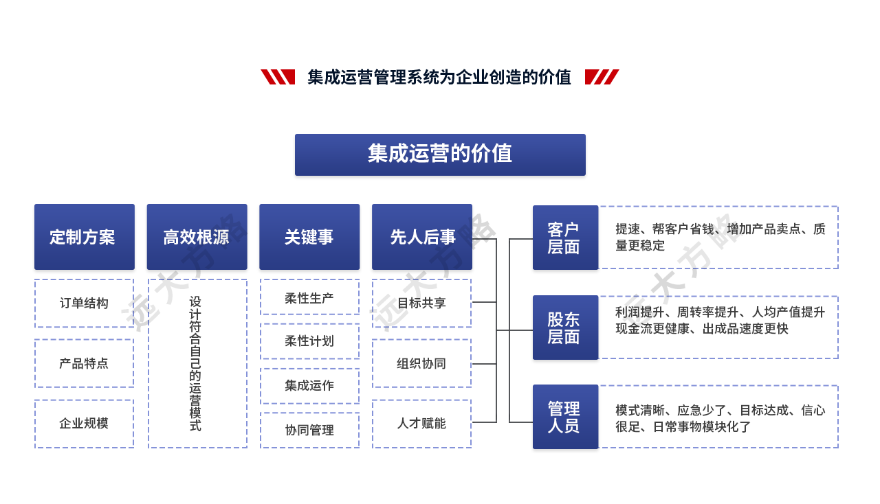 2、輔導模塊:推行卓越運營管理,主要圍繞經營管理中心建立、計劃信息鏈與組織運作信息鏈構建、精益生產模式優化等